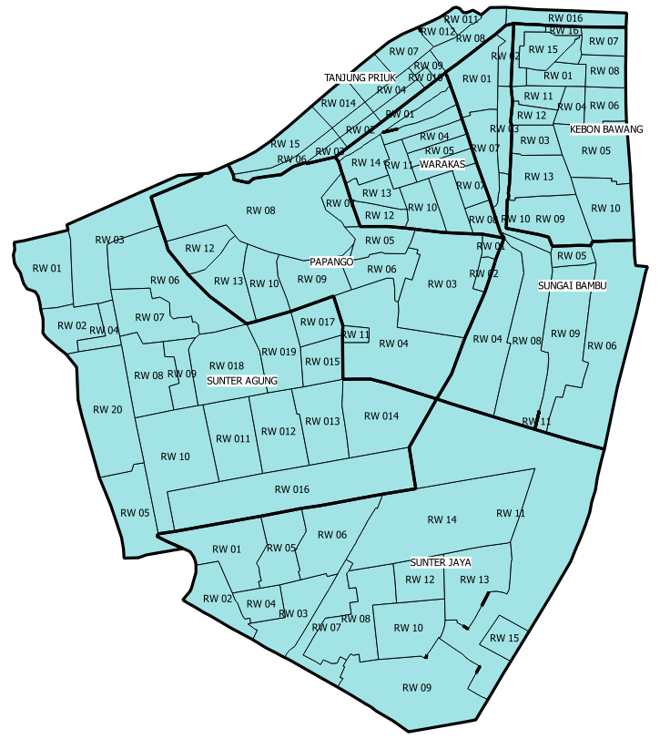 | Sebelah Timur berbatasan dengan Jalan Yos Sudarso Kecamatan Koja. | |
